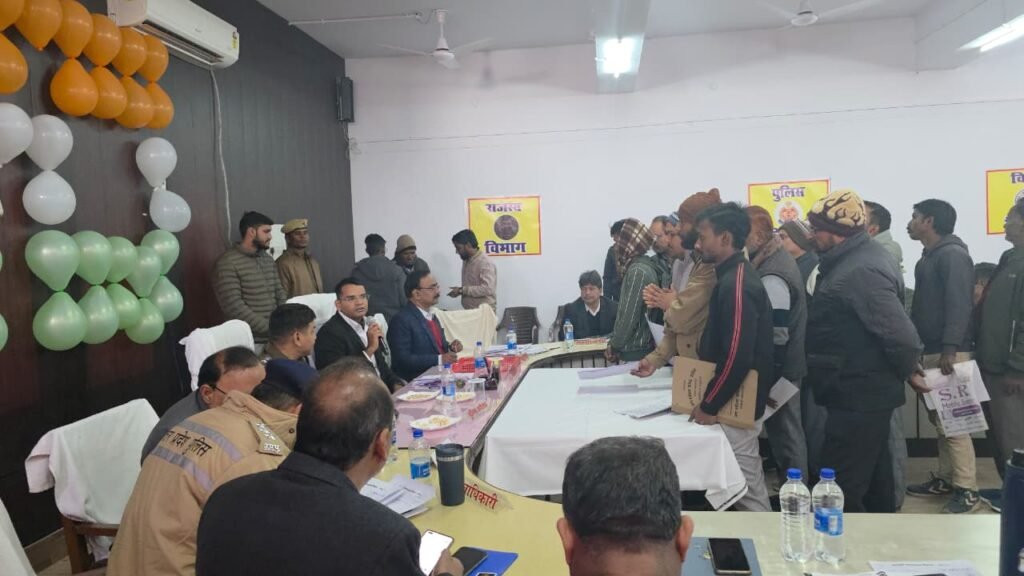 बलरामपुर। तहसील उतरौला में सोमवार को सम्पूर्ण समाधान दिवस का आयोजन जिलाधिकारी विपिन कुमार जैन की अध्यक्षता में किया गया। इस दौरान पुलिस अधीक्षक विकास कुमार भी मौजूद रहे। समाधान दिवस में पहुंचे फरियादियों की समस्याओं को अधिकारियों ने गंभीरता से सुना। जिलाधिकारी ने स्पष्ट निर्देश दिए कि सभी प्राप्त शिकायतों का गुणवत्तापूर्ण, पारदर्शी और समयबद्ध निस्तारण किया जाए, ताकि आम जनता को बार-बार कार्यालयों के चक्कर न लगाने पड़ें। उन्होंने कहा कि अधिकारियों की जिम्मेदारी है कि वे मौके पर जाकर समस्याओं का समाधान सुनिश्चित करें। डीएम ने विशेष रूप से भूमि विवाद, राजस्व और कानून-व्यवस्था से जुड़े मामलों पर सख्ती दिखाई। उन्होंने पुलिस और राजस्व विभाग की संयुक्त टीम बनाकर मौके पर त्वरित कार्रवाई करने के निर्देश दिए। साथ ही कहा कि सरकारी भूमि पर किसी भी तरह का अवैध कब्जा बर्दाश्त नहीं किया जाएगा और इसकी नियमित निगरानी जरूरी है।