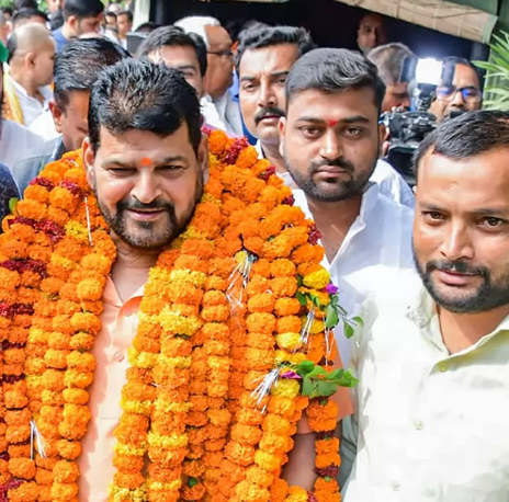 बृजभूषण का शक्ति प्रदर्शन, मंच पर MP के शिक्षा मंत्री मौजूद