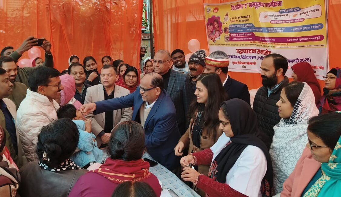 गोण्डा। जनपद गोण्डा के जिला महिला चिकित्सालय में आज “विटामिन ए संपूर्ण” कार्यक्रम के द्वितीय चरण का भव्य शुभारम्भ किया गया। कार्यक्रम का उद्घाटन मुख्य विकास अधिकारी (सीडीओ) अंकिता जैन ने फीता काटकर किया। इस अवसर पर उन्होंने उपस्थित अधिकारियों, चिकित्सकों और स्वास्थ्यकर्मियों को कार्यक्रम की सफलता के लिए शुभकामनाएं दी और बच्चों के बेहतर स्वास्थ्य के लिए इस अभियान की अहमियत पर जोर दिया।