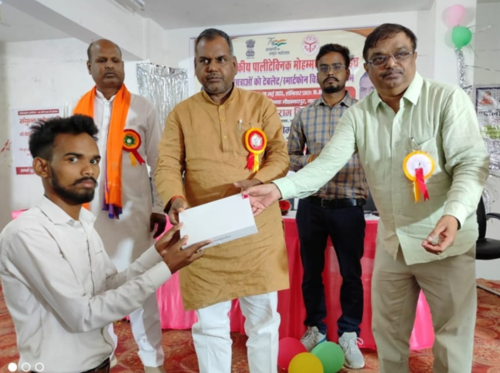 बहराइच में राजकीय पॉलीटेक्निक मोहम्मदपुर में स्मार्टफोन/टैबलेट वितरण कार्यक्रम आयोजित हुआ। समारोह में मुख्य अतिथि विधायक नानपारा राम निवास वर्मा व विशिष्ट अतिथि अपना दल (एस) बौद्विक मंच उत्तर प्रदेश के प्रदेश सचिव ओम प्रकाश पटेल रहे। मुख्य अतिथि ने संस्था के अन्तिम वर्ष के शत प्रतिशत छात्र/छात्राओं को 165 टैबलेट का वितरण किया। छात्र-छात्राएं लैपटाप की सौगात पाते ही खुशी से झूम उठे।
