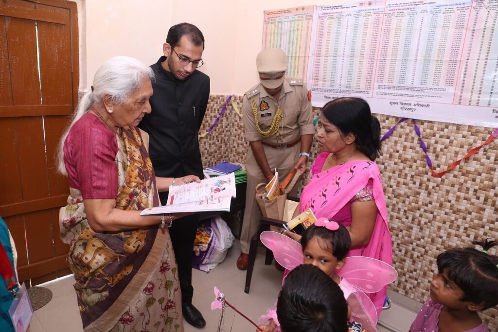 प्रदेश की राज्यपाल आनंदीबेन पटेल ने शुक्रवार को गोरखपुर के प्राथमिक विद्यालय रावत पाठशाला के आंगनबाड़ी केंद्र का निरीक्षण किया और बच्चों से बात की। निरीक्षण के दौरान आंगनबाड़ी केंद्र के बच्चों ने राज्यपाल को गिनती, कविता पाठ तथा अंक और हिन्दी के वर्णमाला लिखकर दिखाया। इस आंगनबाड़ी केंद्र पर गर्भवती,धात्री एवं छः वर्ष तक के बच्चे समेत लगभग 85 लाभार्थी रजिस्टर्ड थे, जिनमें तीन वर्ष से छः वर्ष के 28 बच्चे दर्ज थे। सभी 28 बच्चे मौजूद रहे।