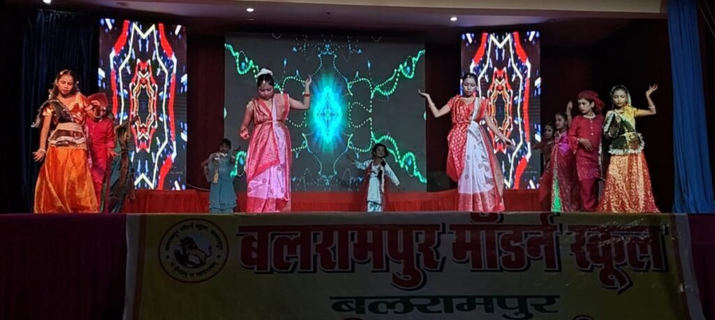 बलरामपुर मॉडर्न इंटर कॉलेज में तीन दिवसीय वार्षिकोत्सव का शुक्रवार को रंगारंग सांस्कृतिक कार्यक्रम के साथ भव्य समापन हुआ। इस अवसर पर नन्हे-मुन्ने कलाकारों ने अपनी शानदार प्रस्तुतियों से दर्शकों को मंत्रमुग्ध कर दिया। कार्यक्रम का शुभारंभ पुलिस अधीक्षक विकास कुमार और पैटर्न ट्रस्टी उमंग चतुर्वेदी ने दीप प्रज्ज्वलन और मां सरस्वती के चित्र पर माल्यार्पण से किया।कार्यक्रम की शुरुआत मां सरस्वती की आराधना से हुई। इसके बाद छोटी बच्चियों ने स्वागत गीत और अभिनय के जरिए अतिथियों का अभिनंदन किया। बच्चों ने “मेरे सपने” और पंजाबी नृत्य पर शानदार ठुमके लगाए, जिससे दर्शकों ने तालियों की गड़गड़ाहट से बच्चों का उत्साह बढ़ाया। द्रोपदी चीरहरण पर आधारित नृत्य नाटिका और महात्मा बुद्ध के जीवन से जुड़ी अंगुलिमाल डाकू की कहानी ने दर्शकों को भावविभोर कर दिया। अंग्रेजी नाटक में बच्चों का आत्मविश्वास देखते ही बनता था। “खइके पान बनारस वाला” गाने पर बच्चों के डांस ने पंडाल को झूमने पर मजबूर कर दिया।