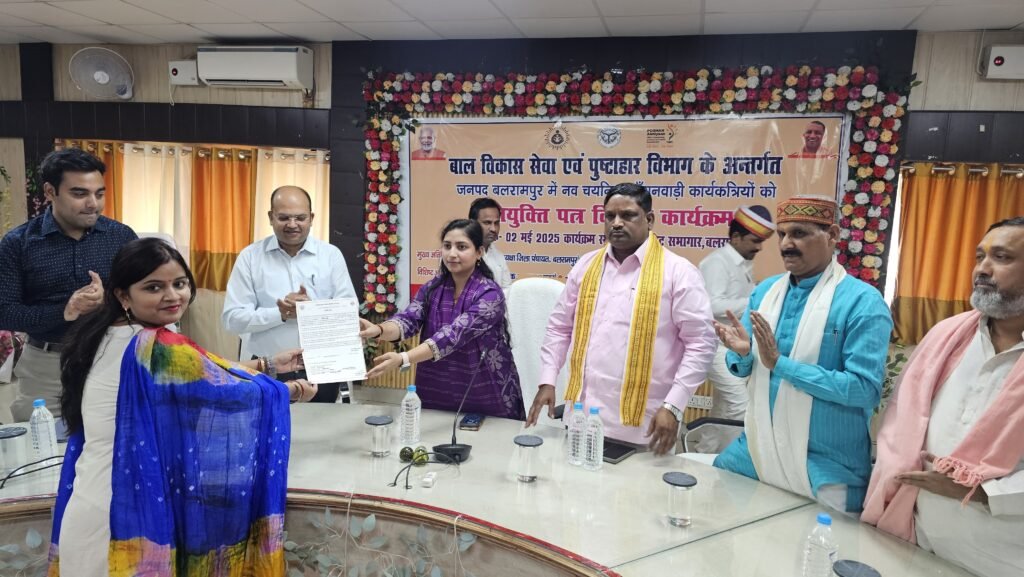 बलरामपुर। जिले में नवचयनित आंगनबाड़ी कार्यकत्रियों को शुक्रवार को कलेक्ट्रेट सभागार में आयोजित एक भव्य समारोह में नियुक्ति पत्र प्रदान किए गए। इस अवसर पर जिले के विभिन्न क्षेत्रों से आईं महिलाओं के चेहरे खुशी से खिल उठे। नियुक्ति पत्र प्राप्त कर इन महिलाओं ने अपने जीवन में नए रास्ते खोले और समाज में महत्वपूर्ण भूमिका निभाने के लिए प्रतिबद्धता जताई। कार्यक्रम में मुख्य अतिथि के रूप में उपस्थित बलरामपुर विधायक पल्टूराम, तुलसीपुर विधायक कैलाश नाथ शुक्ला, उतरौला विधायक राम प्रताप वर्मा, जिला पंचायत अध्यक्ष आरती तिवारी और जिलाधिकारी पवन अग्रवाल ने चयनित कार्यकत्रियों को शुभकामनाएं दीं। इस अवसर पर सभी नेताओं ने एक स्वर में कहा कि आंगनबाड़ी कार्यकत्रियों का चयन पूरी पारदर्शिता और योग्यता के आधार पर हुआ है।कार्यक्रम में सदर विधायक पल्टूराम ने कहा कि यह नियुक्तियां महिलाओं के लिए नए अवसर लाए हैं। उन्होंने कहा, “यह अवसर सिर्फ नौकरी पाने का नहीं, बल्कि समाज सेवा का है। आंगनबाड़ी कार्यकत्रियों का काम बच्चों और गर्भवती महिलाओं के कल्याण से जुड़ा हुआ है, जो समाज के स्वास्थ्य को सुधारने के लिए बेहद महत्वपूर्ण है।” तुलसीपुर विधायक कैलाश नाथ शुक्ला ने इस बात पर जोर दिया कि यह नियुक्तियां समाज में महिला सशक्तिकरण का प्रतीक हैं। उन्होंने महिलाओं से आह्वान किया कि वे इस जिम्मेदारी को पूरी मेहनत और ईमानदारी से निभाएं, ताकि समाज में बदलाव लाया जा सके।