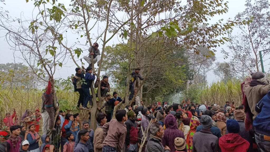 किसानों ने पेड़ पर बैठा देखा तेंदुआ