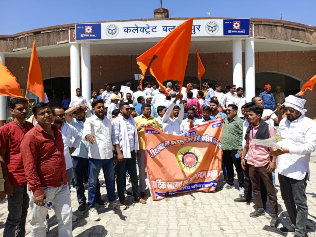बलरामपुर। बलरामपुर में क्षत्रिय एकता मंच के बैनर तले आज महाराणा सांगा पर दिए गए विवादित बयान के खिलाफ बड़ी रैली निकाली गई। प्रदर्शनकारियों ने सपा सांसद रामजीलाल सुमन का पुतला फूंका और बाइक रैली निकालकर कलेक्ट्रेट पहुंचे, जहां मुख्यमंत्री को संबोधित ज्ञापन एडीएम न्यायिक को सौंपा गया। सैकड़ों लोगों ने जबरदस्त नारेबाजी करते हुए सांसद की सदस्यता समाप्त करने की मांग की।