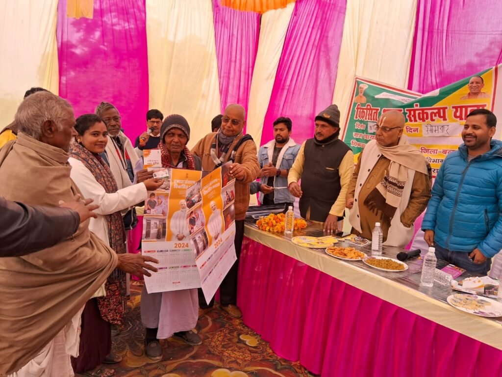 देश भर में भारत के सभी ग्राम पंचायतों में उन कमजोर लोगों तक पहुंचना जो विभिन्न योजनाओं के तहत पात्र हैं लेकिन अभी तक लाभ नहीं उठाया हैयोजनाओं के बारे में जानकारी का प्रसार और जागरूकता पैदा करना ,सरकारी योजनाओं के लाभार्थियों के साथ उनकी व्यक्तिगत कहानियों/अनुभव साझा करने के माध्यम से बातचीत यात्रा के दौरान सुनिश्चित विवरण के माध्यम से संभावित लाभार्थियों का नामांकन। यह अभियान भारत सरकार, राज्य सरकारों, केंद्र सरकार के विभिन्न मंत्रालयों/विभागों की सक्रिय भागीदारी के साथ संपूर्ण सरकारी दृष्टिकोण अपनाकर चलाया जा रहा है। जिला मंत्री सुमित सिंह व मण्डल अध्यक्ष अरविंद मिश्र ने कहा कि विकसित भारत संकल्प यात्रा देश के नागरिकों के लाभ के लिए और विकसित भारत के दृष्टिकोण को साकार करने के लिए सभी संबंधित पक्षों की यथासंभव व्यापक भागीदारी सुनिश्चित करने के लिए संगठन और संस्थान है कार्यक्रम में शिक्षा, स्वास्थ्य, कृषि, पंचायत, विकास विभाग द्वारा चलाई जा रही विभिन्न कल्याणकारी योजनाओं की जानकारी दी गई।