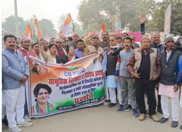 लोकसभा और राज्यसभा से सांसदों के निलंबन से कांग्रेसियों में नाराजगी है। बस्ती में कांग्रेस कार्यकर्ताओं ने शास्त्री चौक से लेकर गांधी कला भवन तक प्रदर्शन किया। तानाशाही बंद करो का नारा लगाया। साथ ही सांसदों के निलंबन की भर्त्सना की।जिलाध्यक्ष ज्ञानेन्द्र पांडेय ने कहा दोनों सदनों से अब तक 146 सांसद निलंबित किए जा चुके हैं।