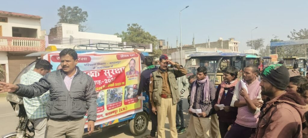 बलरामपुर। सड़क सुरक्षा के प्रति जागरूकता बढ़ाने और सड़क दुर्घटनाओं में कमी लाने के उद्देश्य से 1 जनवरी से 31 जनवरी तक राष्ट्रीय सड़क सुरक्षा माह मनाया जा रहा है। इस अभियान के तहत, शनिवार को डीएम पवन अग्रवाल के निर्देशानुसार, परिवहन विभाग और यातायात पुलिस ने मिलकर बलरामपुर की चीनी मिल में गन्ना ढुलाई में लगे ट्रैक्टर ट्रालियों के चालकों को यातायात नियमों के बारे में बताया और उन्हें ओवरलोड और ओवरहाइट गन्ना ढुलाई से बचने के लिए जागरूक किया।इस अभियान के तहत ट्रैक्टर ट्रालियों पर रेट्रो रिफ्लेक्टिव टेप लगाया गया ताकि रात्रि में वाहन चालक इन्हें आसानी से देख सकें और सड़क पर दुर्घटनाओं का खतरा कम हो सके। इसके साथ ही ट्रैक्टर ट्रालियों के चालकों को ओवरलोडिंग और ओवरहाइट गन्ना ढुलाई से बचने के लिए समझाया गया, ताकि सड़क सुरक्षा सुनिश्चित की जा सके।देवीपाटन मंदिर तिराहे पर ई-रिक्शा वाहन चालकों को भी यातायात नियमों से जागरूक किया गया। उन्हें बताया गया कि वे मुख्य मार्ग पर अपनी गाड़ी को खड़ी न करें और राष्ट्रीय राजमार्ग पर सवारी लेकर न चलें, ताकि दुर्घटनाओं से बचा जा सके।