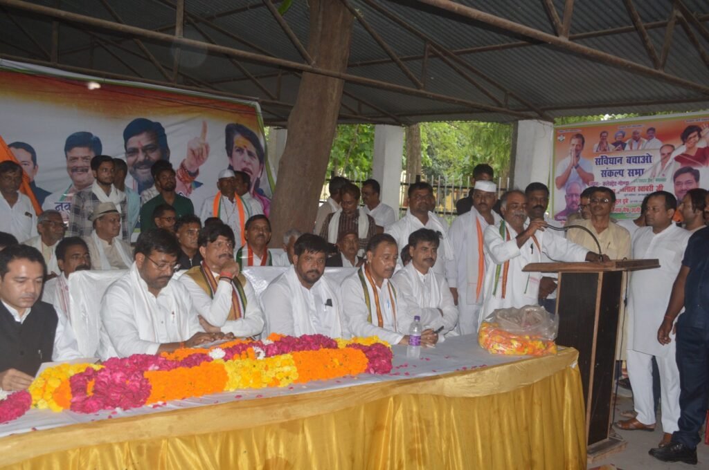 कार्यक्रम की अध्यक्षता प्रमोद मिश्रा ने किया। कार्यक्रम का संचालन पूर्व प्रदेश प्रवक्ता बृजेंद्र सिंह एवं जिला प्रवक्ता शिव कुमार दुबे ने संयुक्त रूप से किया। कार्यक्रम में मुख्य रूप से अल्पसंख्यक अध्यक्ष सगीर खान डिम्पल सिंह युवा कांग्रेस के और प्रदेश अध्यक्ष तरुण पटेल पूर्व प्रत्याशी कुतुबुद्दीन खान डायमंड पूर्व प्रत्याशी रमा कश्यप पूर्व प्रत्याशी त्रिलोकी नाथ तिवारी रघुपति त्रिपाठी चांद खान ब्लॉक अध्यक्ष हरीश चंद्र श्रीवास्तव धर्मराज सिंह प्रदुमन शुक्ला धर्मराज सिंह सुरेंद्र बहादुर अब्दुल रहमान जलील अहमद खान सहित तमाम कांग्रेस नेता उपस्थित रहे। प्रदेश अध्यक्ष की उपस्थिति में सहायकों को लोगों ने कांग्रेस पार्टी मैं शामिल होकर संविधान बचाओ अभियान का संकल्प लिया जिसमें मुख्य रुप से महाराजगंज के सभासद शाहिद कुरेशी पूर्व सभासद राजेंद्र नगर आमिल के साथ सैकड़ों लोगों ने कांग्रेस पार्टी में शामिल होकर पार्टी को मजबूत करने का संकल्प लेते हुए संविधान बचाओ अभियान मैं पूरी ताकत से जुट जाने का संकल्प लिया इस अवसर पर राम श्रृंगार भारती शुक्ला प्रसाद शुक्ला बृजेश पांडे विनय प्रकाश त्रिपाठी चांद खान मोबीन खान ओमप्रकाश सोनकर अजय रस्तोगी सहित सैकड़ों लोग शामिल रहे।
