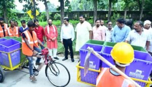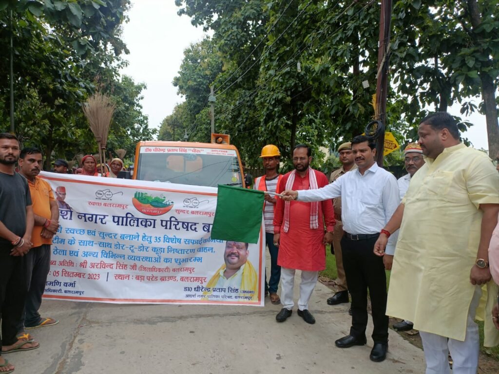 बलरामपुर नगर पालिका परिषद बलरामपुर में साफ सफाई की व्यवस्था को और सुदृढ़ बनाने के लिए जिलाधिकारी अरविंद सिंह नई डोर टू डोर कूड़ा कलेक्शन वाहन को 35 विशेष सफाई कर्मियों की टीम के साथ हरी झंडी दिखाकर रवाना किया गया। इस दौरान अध्यक्ष नगर पालिका परिषद बलरामपुर धीरेंद्र प्रताप सिंह उपस्थित रहे।बलरामपुर नगर क्षेत्र को साफ सुथरा एवं स्वच्छ रखने के लिए शहर के सभी वार्डों में एक-एक सफाई नायक तथा आठ सफाई कर्मियों की टीम लगाई जाएगी। साथ ही साथ चारों मुख्य मार्ग व मुख्य बाजार के लिए पांच अलग-अलग सफाई की टीम लगाई जाएगी।