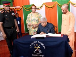 उपराष्ट्रपति जगदीप धनखड़ ने आज गोरखपुर में एक भव्य समारोह के दौरान सैनिक स्कूल का उद्घाटन किया। इस अवसर पर मुख्यमंत्री योगी आदित्यनाथ और उपराष्ट्रपति की पत्नी डॉ. सुदेश धनखड़ भी मौजूद थीं। उपराष्ट्रपति ने उत्तर प्रदेश के मुख्यमंत्री योगी आदित्यनाथ के नेतृत्व में प्रदेश में आए परिवर्तन की खुलकर सराहना की और कहा कि यह परिवर्तन 2017 के बाद से हुआ है।