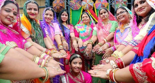 हरियाली तीज पर सुहागिनें हरे रंग को प्राथमिकता देती हैं। यह प्रकृति की समृद्धि और समृद्ध जीवन का प्रतीक रंग है। वे हरे रंग की चूड़ियां और हरे रंग के कपड़े पहनती हैं। इस दौरान महिलाएं सोलह शृंगार कर हाथों में मेहंदी लगाती हैं।नवविवाहित वधू यह पर्व मायके में मनाती हैं और वैवाहिक जीवन में सुख-शांति की मंगल कामना करती हैं। हरियाली तीज के मौके पर खासतौर से पूजा-पाठ के बाद महिलाएं एक-दूसरे को झूला झुलाती हैं। इस दौरान सावन के गीत भी गाए जाते हैं।