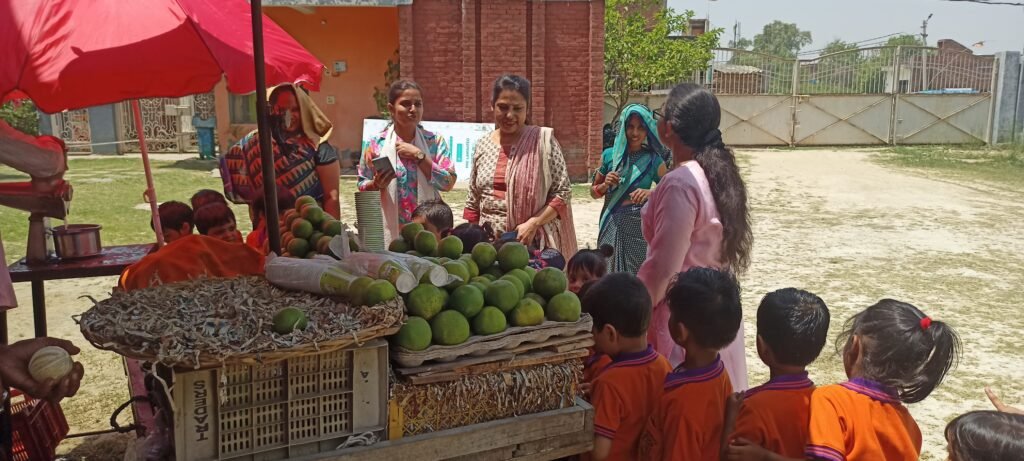 बच्चों को फलों का ताजा जूस वितरित किया