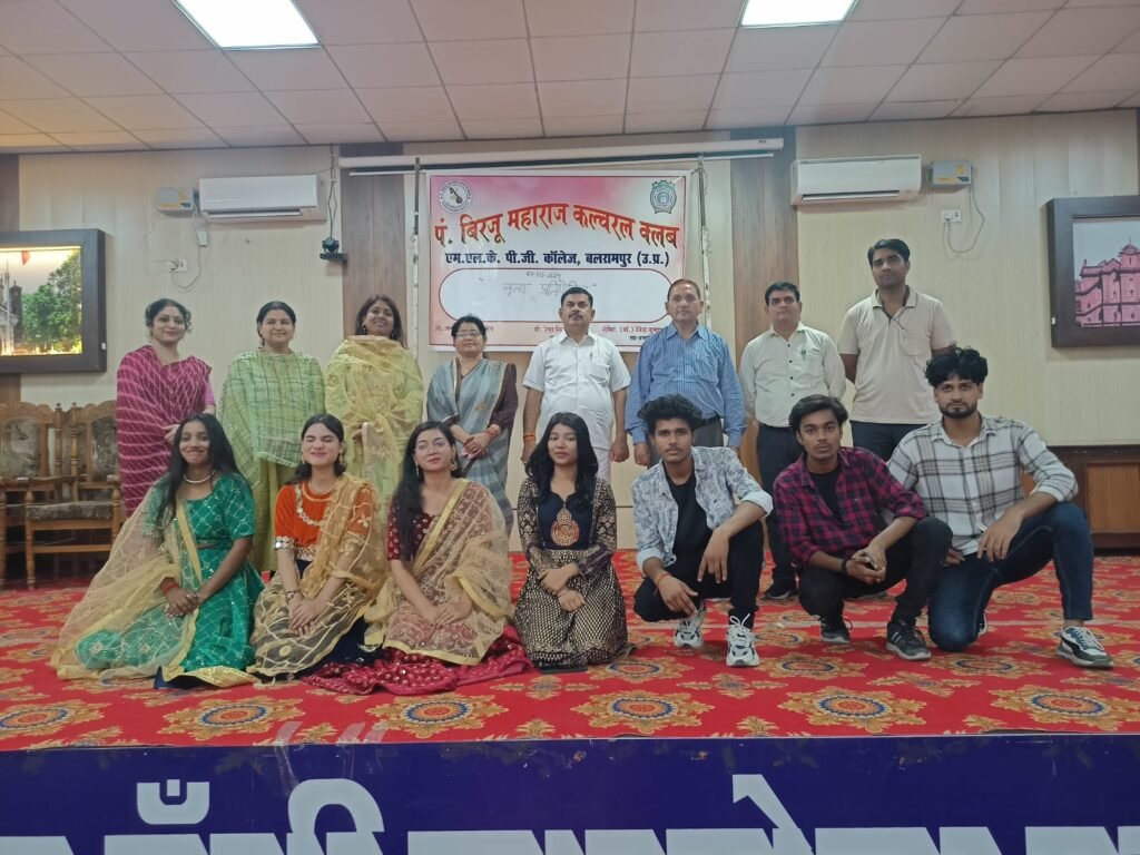 एम एल के पी जी कॉलेज बलरामपुर सभागार में मंगलवार को पंडित बिरजू महाराज कल्चरल क्लब के तत्वावधान में एकल नृत्य प्रतियोगिता का आयोजन किया गया। प्रतियोगिता में काजल व मोहित कश्यप ने बाजी मारी।प्रतियोगिता का शुभारंभ महाविद्यालय प्राचार्य व क्लब अध्यक्ष प्रो0 जे पी पाण्डेय व मुख्य नियंता प्रो0 पी के सिंह ने दीप प्रज्वलित एवं मां सरस्वती के चित्र पर माल्यार्पण करके किया। विजयी प्रतिभागियों को संबोधित करते हुए प्राचार्य प्रो0 पाण्डेय ने कहा कि जब नृत्य की बात आती है, तो “अभ्यास हमेशा परिपूर्ण बनाता है” ।