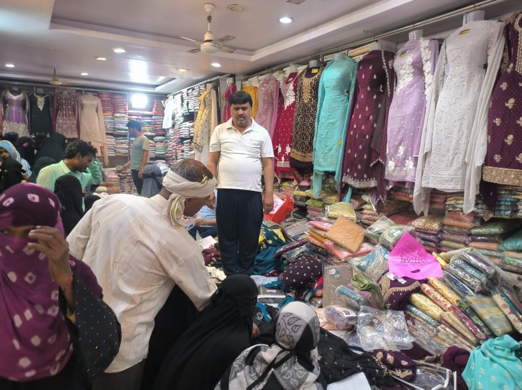 कपड़ों की दुकानों में ग्राहकों की भीड़