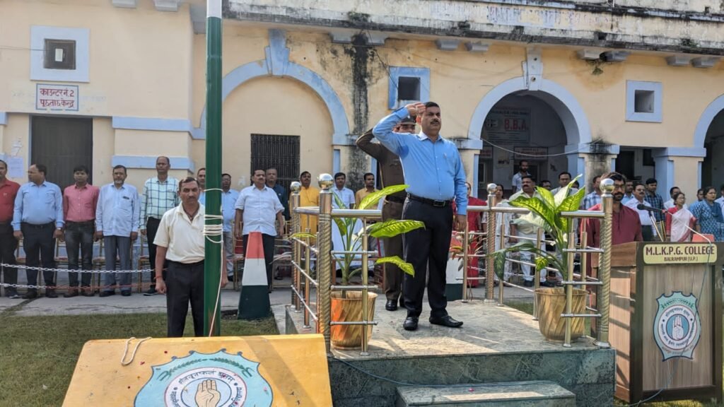 एम एल के पी जी कॉलेज बलरामपुर में मंगलवार को 77 वां स्वतंत्रता दिवस बड़े ही धूमधाम से मनाया गया । इस दौरान छात्र-छात्राओं ने देशभक्ति गीत प्रस्तुत कर अमर शहीदों को नमन किया।स्वतंत्रता दिवस कार्यक्रम का शुभारंभ महाविद्यालय प्राचार्य प्रो0 जे पी पाण्डेय ने ध्वजारोहण करके किया । इसके बाद प्राचार्य प्रो0 पाण्डेय ने महाविद्यालय के ए एन ओ लेफ्टिनेंट(डॉ) की अगुवाई में एन सी सी कैडेटों द्वारा राष्ट्रीय ध्वज को दिए सलामी गॉर्ड का निरीक्षण किया।